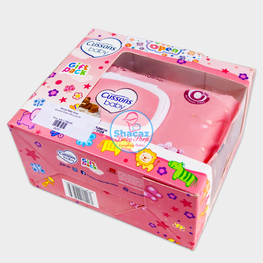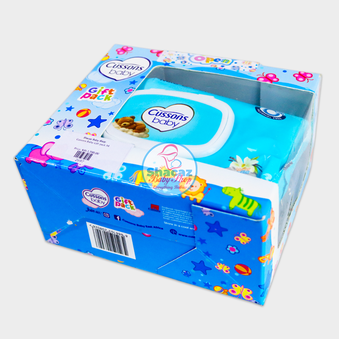 The Cussons Baby Gift Pack, a curated set of essential skincare products for newborns. Specifically, the pink box represents the Soft & Smooth range (often enriched with almond oil and rose oil), while the blue box typically represents the Mild & Gentle range.
