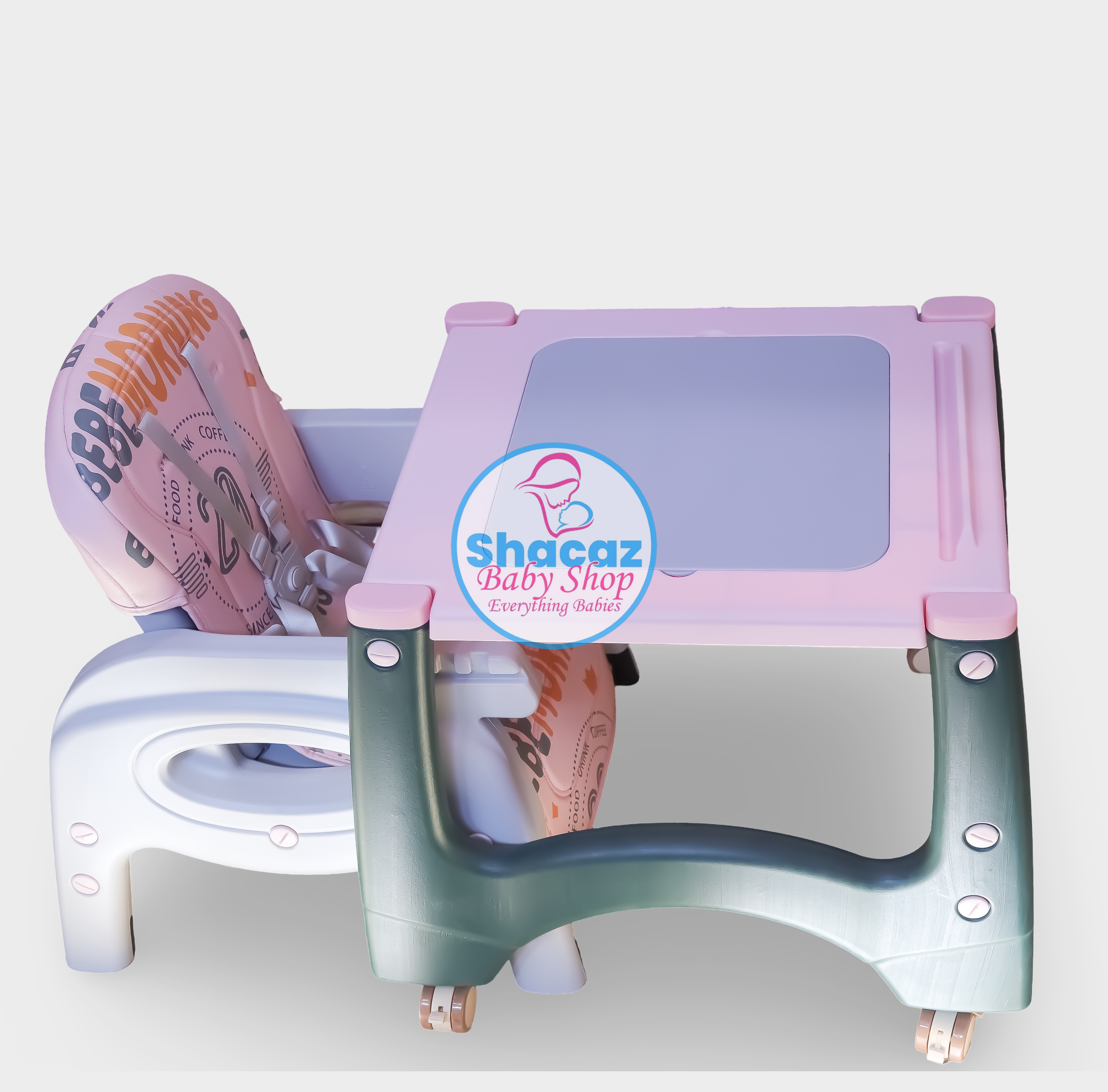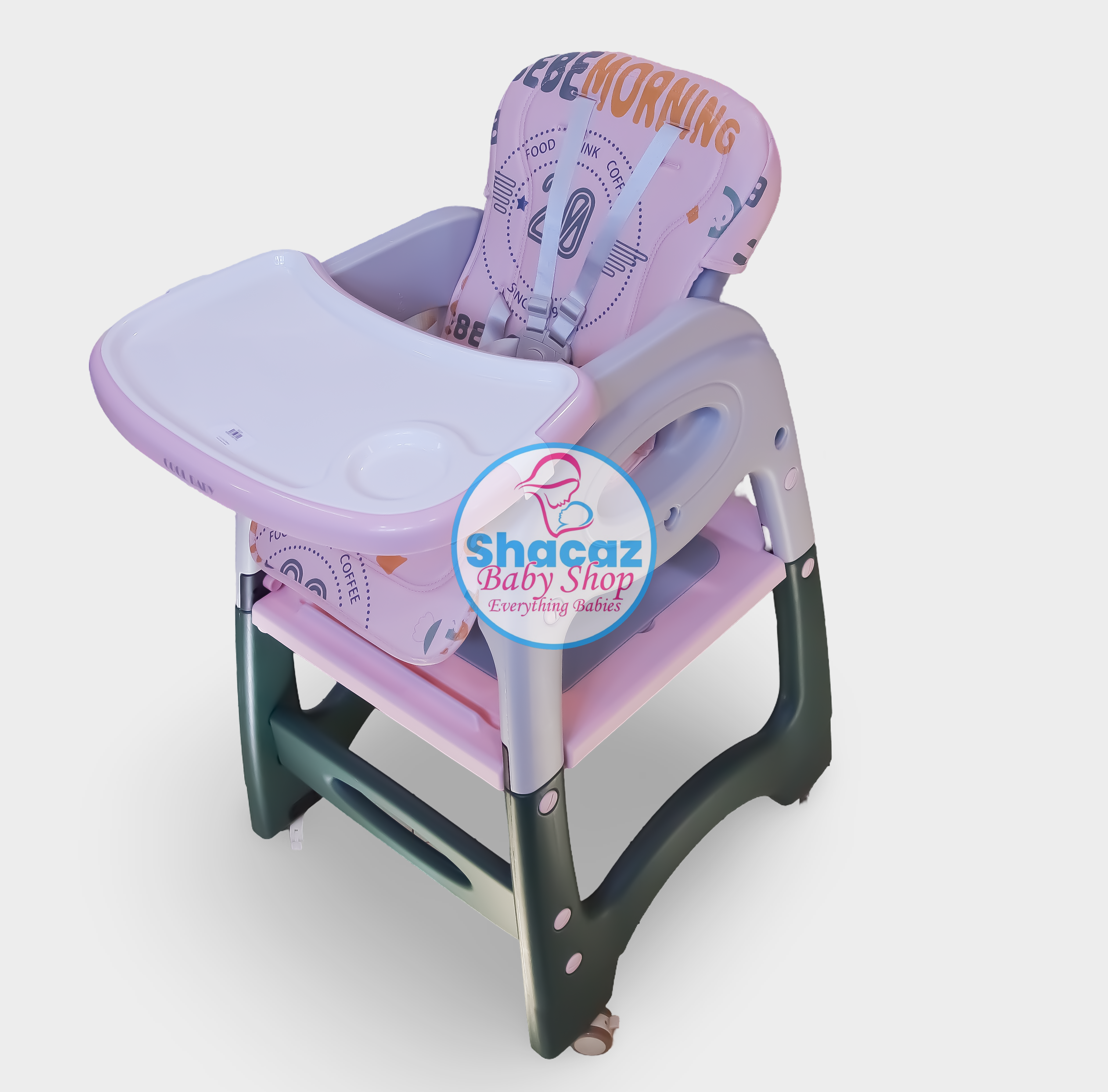 Sturdy and stylish baby feeding chair with a removable tray, safety belt, and a convertible design. Perfect for feeding time and toddler use.